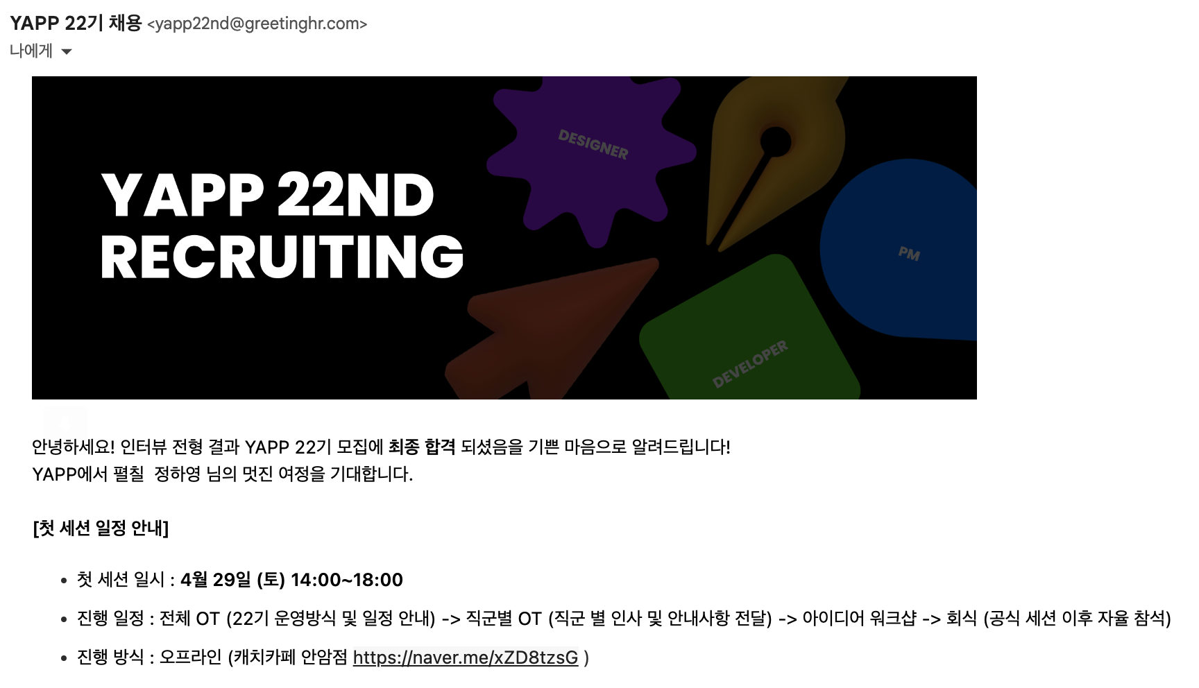 YAPP 22๊ธฐ ์ต์ข ํฉ๊ฒฉ!