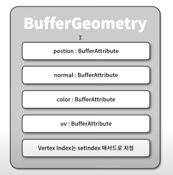 geometry๋ three.js์์ BufferGeometry ํด๋์ค๋ฅผ ํตํด ์ ์ํ๋ค.